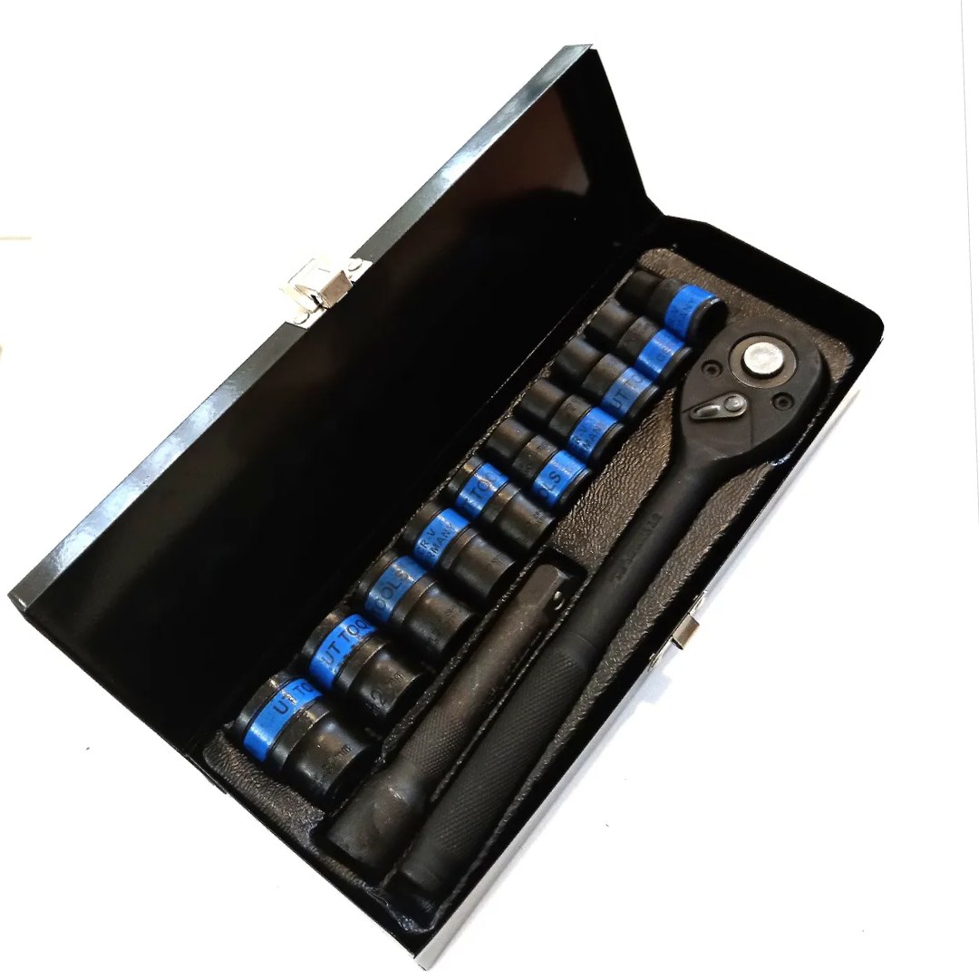 این یک جعبه آچار بکس 12 پارچه کروم وانادیوم با درایو 1/2 اینچ را نشان میدهد.