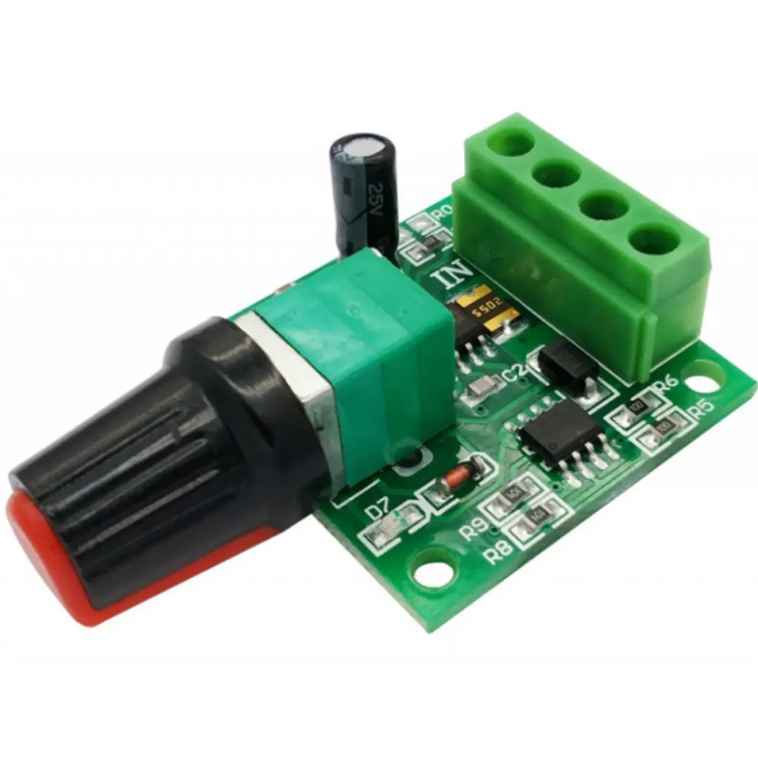 ماژول کنترلر دور موتور با جریان 2 آمپر مدل 1803BK-DC در ساخت پروژه هایی که نیاز به کنترل سرعت موتور و فن است به کار میرود
