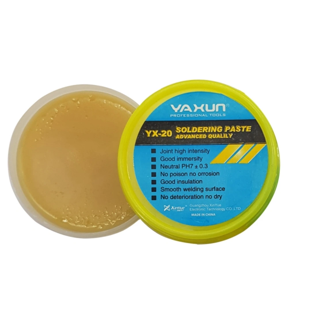 روغن لحیم YAXUN YX-20 با وزن ۱۵۰ گرم، یک فلکس لحیمکاری حرفهای است که برای بهبود اتصال قلع به قطعات الکترونیکی طراحی شده است.